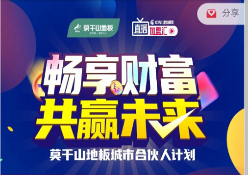 直播加盟匯丨莫干山地板尋覓城市合伙人“暢享財富,共贏未來”!