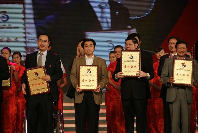 10月11日,第八屆全國殘運會愛心助殘晚會在杭州黃龍體育館隆重舉行。省委副書記、省長呂祖善等省領導分別為升華等捐贈企業頒發了愛心獎牌。集團黨委副書記、副總經理鮑希楠(圖中)代表升華集團登臺接受“愛心企業”企業獎牌。據悉,第八屆全國殘運會將于2011年10月11日在杭州舉辦,也是第八屆全國殘運會倒計時一周年紀念日。為了辦好殘運會,當好東道主,升華集團等省內近百家著名企業慷慨解囊,為盛會的籌備捐資助殘。中國殘聯主席張海迪,第八屆全國殘運會籌委會主任、省委副書記夏寶龍在晚會上致辭,副省長陳加元主持。