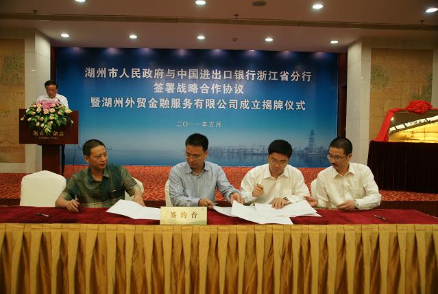 中國進出口銀行浙江省分行行長陳筱敏,湖州市副市長李建平分別代表雙方在當天的儀式上發表講話,對湖州市政府與中國進出口銀行浙江省分行的戰略合作,以及省內首家由政府出資,以中國進出口銀行為依托,專業服務外貿中小企業的市級金融平臺——湖州外貿金融服務有限公司的開業表示祝賀。雙方表示:將精心培育這一新型金融平臺,更好地服務當地外貿中小企業。