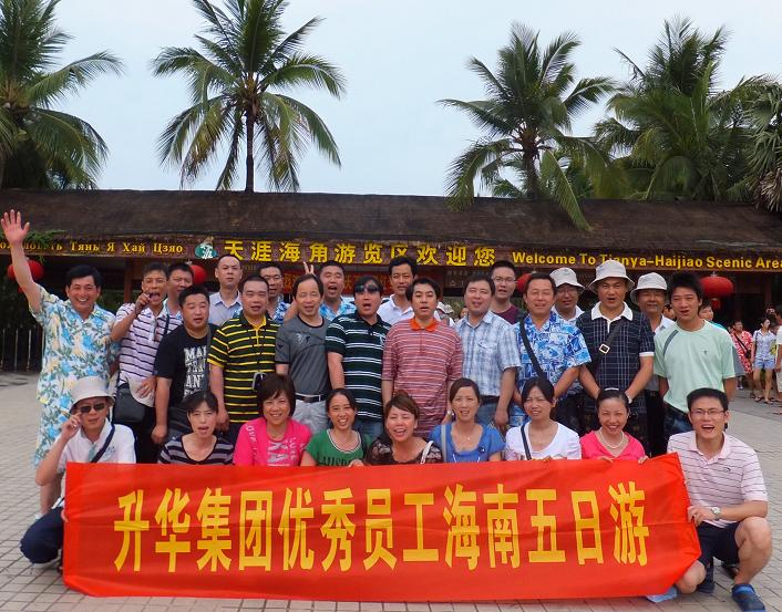 5月14日,升華首個專門為年度先進模范人物量身定做的“犒賞游”團隊順利歸來,26位獲得2010年度升華集團勞動模范、技術創新能手與優秀員工榮譽稱號的先進模范人物,愉快地結束了海南五日游,精神抖擻地回到各自的工作崗位。集團公司黨委副書記、副總經理兼工會主席鮑希楠親自帶隊,他告訴我們:公司出臺一系列的獎勵舉措,犒賞先進模范人物將有助于激發更多員工向優秀員工學習、看齊,對強化崗位責任意識,推動員工間的創先爭優活動也是一種極大的推動。