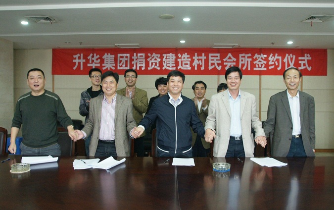 11月8日,升華集團(tuán)為配合公司所在地附近相關(guān)結(jié)對村加快推進(jìn)新農(nóng)村改造步伐,定向捐助400萬元,用于建造8個村民會所。當(dāng)天上午簽約儀式在鐘管鎮(zhèn)政府三樓會議室舉行。集團(tuán)公司黨委副書記、副總經(jīng)理鮑希楠強(qiáng)調(diào)指出,積極投身以創(chuàng)建中國和美家園為載體的新農(nóng)村建設(shè),主動承擔(dān)社會責(zé)任,共筑和諧共贏,我們將作為一項長期“工程”來抓,今后也還將持續(xù)推進(jìn)。鎮(zhèn)人大主席夏美媛,鐘管村黨委書記沈建宏、三墩村黨總支書記姚建忠參加了簽約儀式。