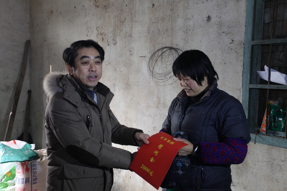 “要好好把身體養好,放寬心,有政府和升華的關心,有親朋的照顧,日子會好起來的。”聽著集團黨委副書記、副總經理鮑希楠滿懷關切地再三叮囑,家在三墩村三墩組的吳新華接過2000元的“愛心紅包”和兩瓶食用油感激不已。吳新華身體不太好,妻子也患殘疾,母親身體也不好,正當他家陷入困窘之中時,升華集團送來了無限溫暖。