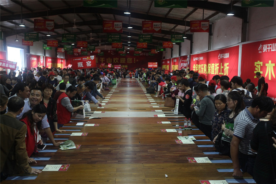 江浙皖三省聯動已舉辦了四次,規模一次比一次大,氛圍一次比一次濃厚。除了首屆三省聯動放在德清縣體育中心舉行,其余三屆均在工廠。此次三省聯動活動中,該公司進一步擴大了產品展區,設置了一個主展區、淘寶區及新品展區,將行政辦公樓北面的空地修建成停車場。為了提高收銀區的工作效率,盡可能縮短客戶排隊等候時間,該公司新增了3臺POS機。