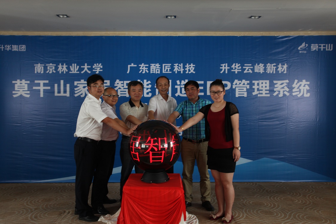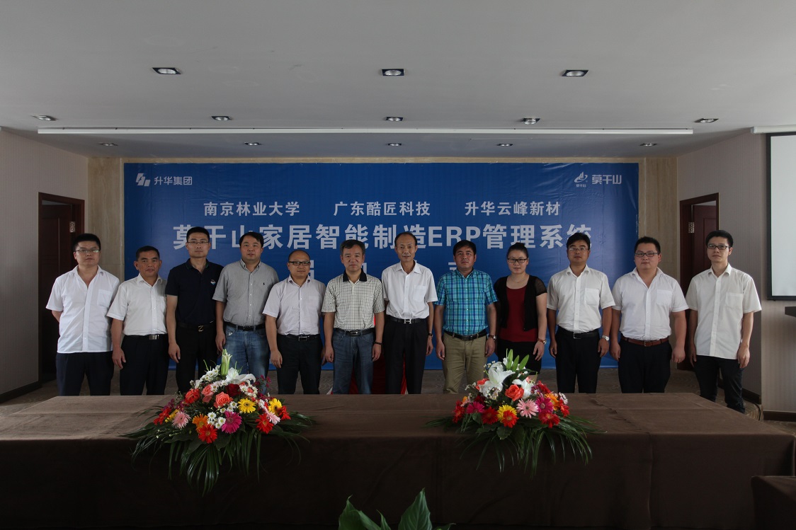 8月12日,集團(tuán)所屬企業(yè)云峰新材莫干山家居智能制造ERP管理系統(tǒng)項(xiàng)目啟動(dòng)儀式在升華大酒店舉行。云峰新材董事長兼總經(jīng)理顧水祥與項(xiàng)目合作方南京林業(yè)大學(xué)家具與工業(yè)設(shè)計(jì)學(xué)院院長吳智慧、廣東酷匠科技有限公司總經(jīng)理劉海波共同簽署了合作協(xié)議。鐘管鎮(zhèn)黨委委員、副鎮(zhèn)長沈志剛,縣經(jīng)信委相關(guān)部門負(fù)責(zé)人,云峰新材總工程師龐小仁、云峰新材所屬企業(yè)莫干山家居總經(jīng)理唐遠(yuǎn)明等參加了當(dāng)天的活動(dòng)。