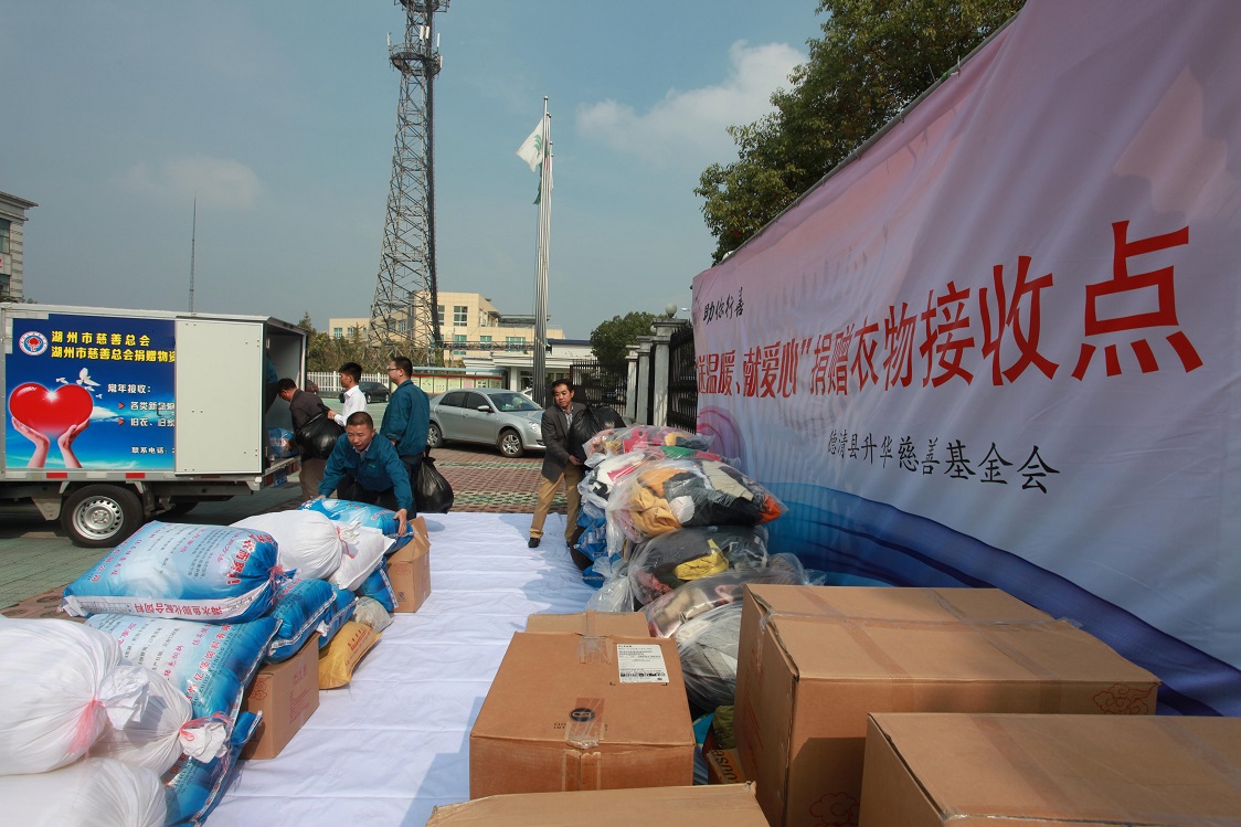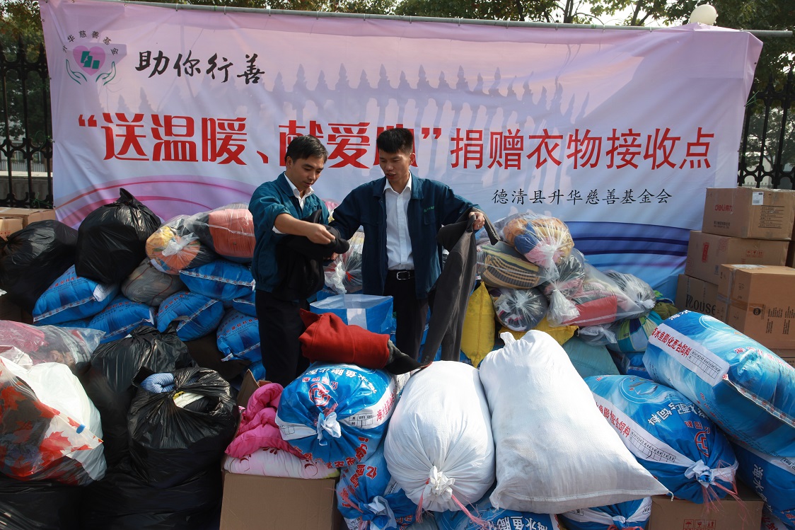 當天上午,湖州市慈善總會捐贈物資接收管理中心專門派出車輛將升華干部職工捐贈的衣物運往指定地點,再由志愿者統一整理、清洗、包裝之后,由市慈善總會牽頭對接,捐贈給貧困地區或當地外來民工。