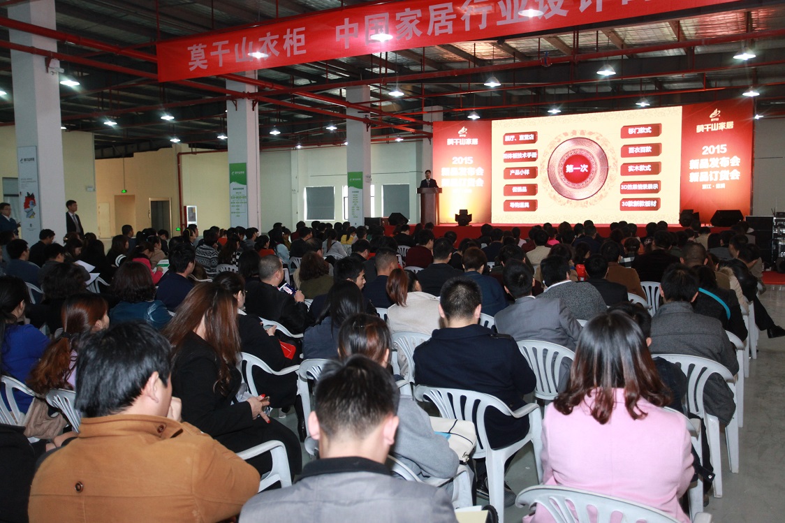 11月13日,云峰新材所屬莫干山家居新品發布會在縣城武康開發區生產基地成功舉行,400多位來自全國各地的經銷商選訂了各自市場區域內消費者喜好的新產品與促銷品?!鞍僖掳夙槨倍喙δ芤鹿竦纫幌盗行缕繁宦≈赝瞥?。一支富有創新力與戰頭力的研發創新團隊得到了展示。會議期間,公司還發布了柜體版技術標準手冊,并且介紹了“2020”信息化系統升級情況及訂單管理系統建設情況。