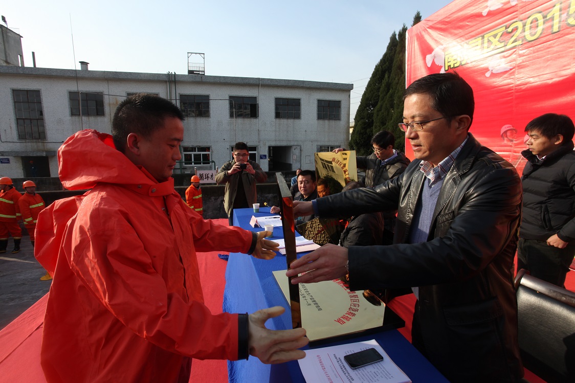 11月27日下午,湖州市南潯區危化品企業火災事故應急預案演練在升華拜克所屬企業新奧特舉行。南潯區副區長潘耕峰,南潯區安委會、安監局、菱湖鎮有關部門負責人,新奧特董事長兼總經理林伯祥及其他企業代表觀摩演練。當天,區政府、安監局還為新奧特危化品應急救援隊伍等6支新成立的應急救援隊伍授牌。