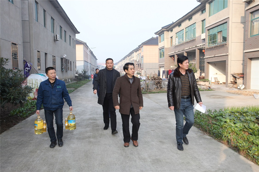 1月15日,升華走訪慰問百戶困難家庭再度出發。鐘管鎮黨委副書記、派出所所長呂政,鎮黨委委員、副鎮長孫冰,集團黨委副書記、升華慈善基金會理事長鮑希楠,集團公司副總裁王菊平,集團所屬企業云峰新材董事長兼總經理顧水祥,集團及所屬各子公司相關部門負責人等,分成8個小組走訪慰問了鐘管鎮范圍內的226戶困難家庭,為每個困難家庭送上2000元“愛心紅包”和2桶食用油,向他們噓寒問暖,送去升華人的誠摯祝福。